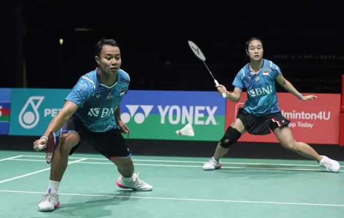 Mereka mengalahkan wakil Jerman, Mark Lamsfuss/Isabel Lohau, dengan skor 21-15, 12-21, 21-17.
