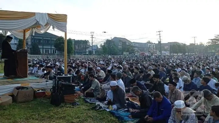 Ribuan Jamaah Ikuti Salat Idul-Fitri di Lapangan Sekarwangi Cibadak