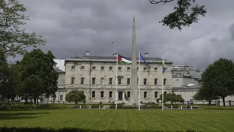 Bendera Palestina pun dikibarkan di Dublin di luar Leinster House, gedung parlemen Irlandia.